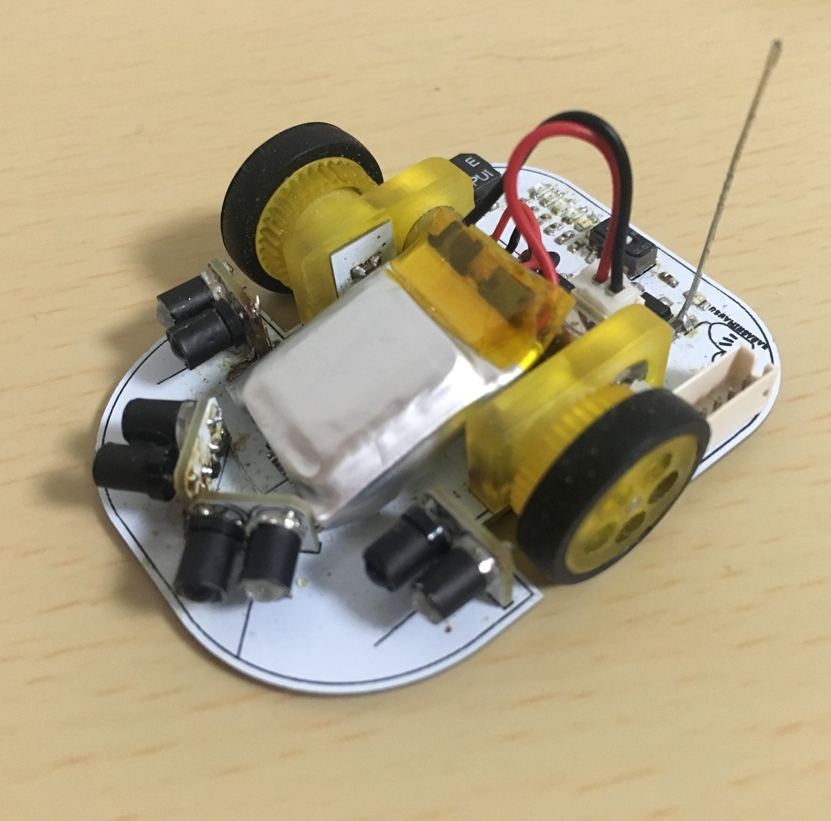 構成としては、二輪の吸引機構なし型のマイクロマウスです。基本に忠実な構成になっています。最近では、4輪の吸引機構ありのマウスが増え(特にクラシックマウス)、逆に目新しいかもしれません。